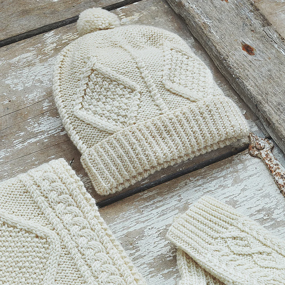 Designed and hand knit in Ireland, this wool hat is a cosy addition to any outfit.