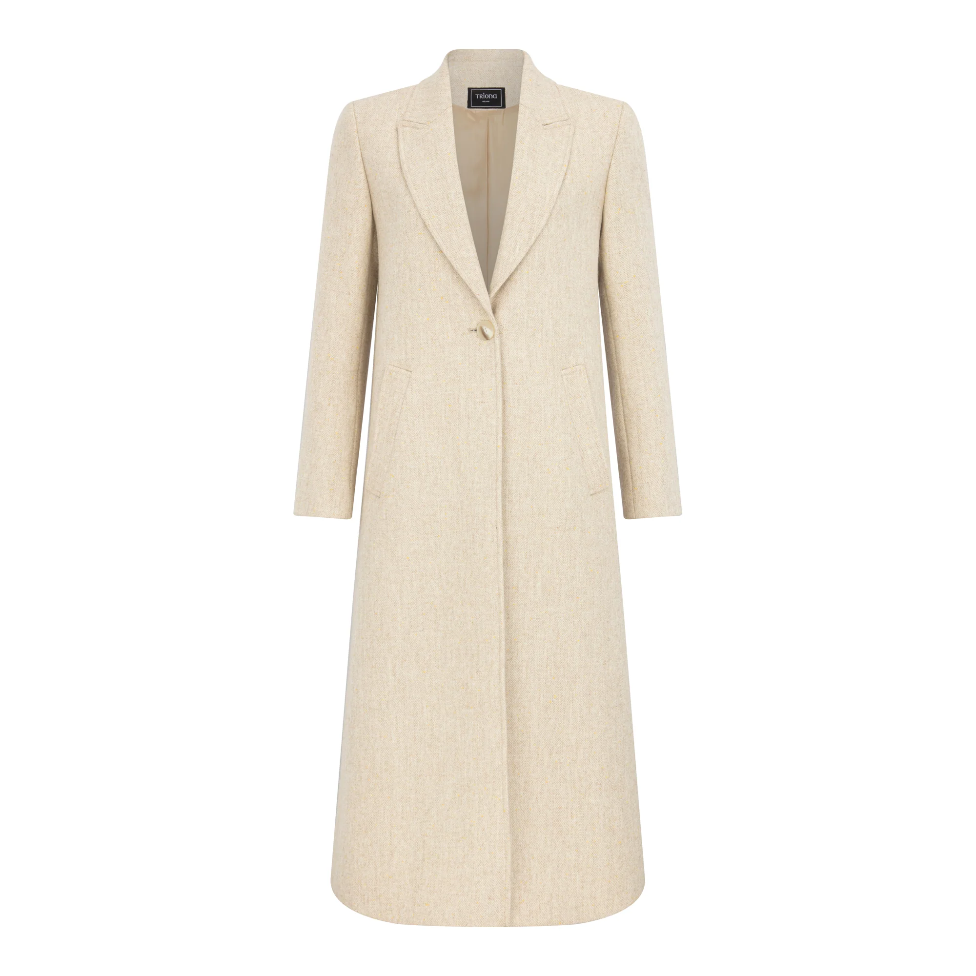 Introducing the Beige Herringbone Shannon Tweed Coat from Triona's AW24 "Heritage Reverie" collection—a true statement of refined elegance and modern sophistication.