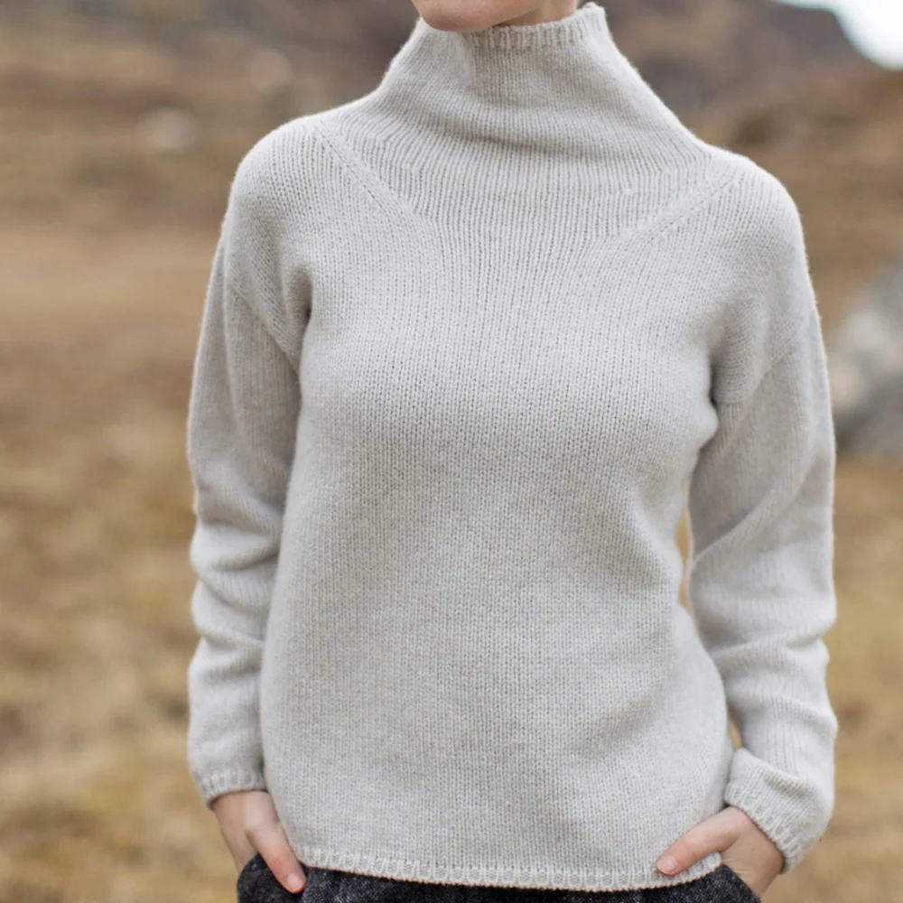 The funnel neck and relaxed fit of this merino sweater make it a flattering fit and suitable for any figure.