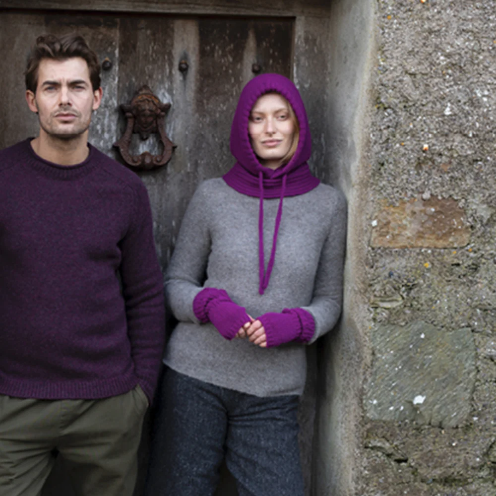 Inspired by the vibrant purple of the foxglove plant, this knitted hood by Fisherman Out of Ireland is a standout piece in any wardrobe.