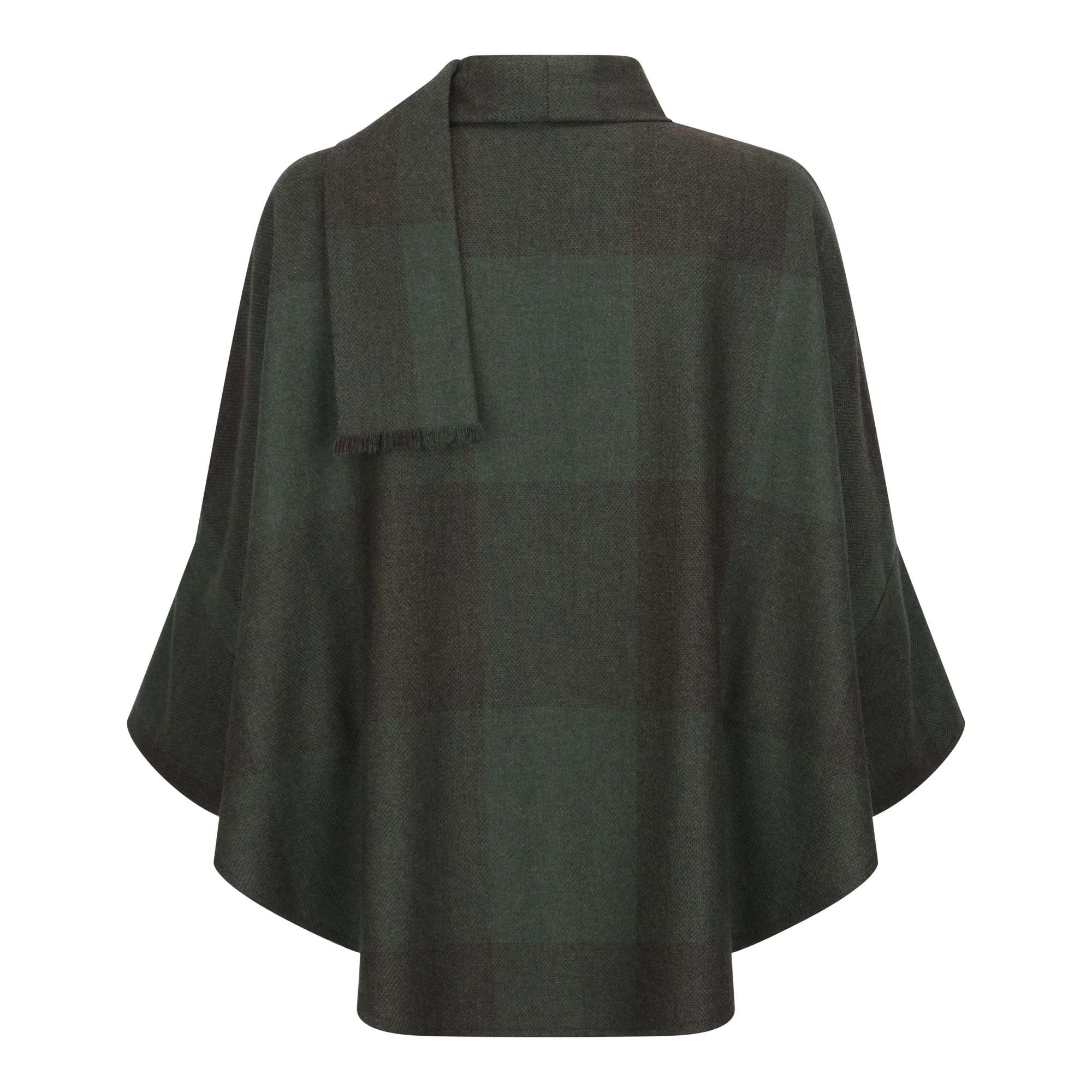 The distinctive green and brown square pattern of this cape has been inspired by the rugged boglands of Donegal.