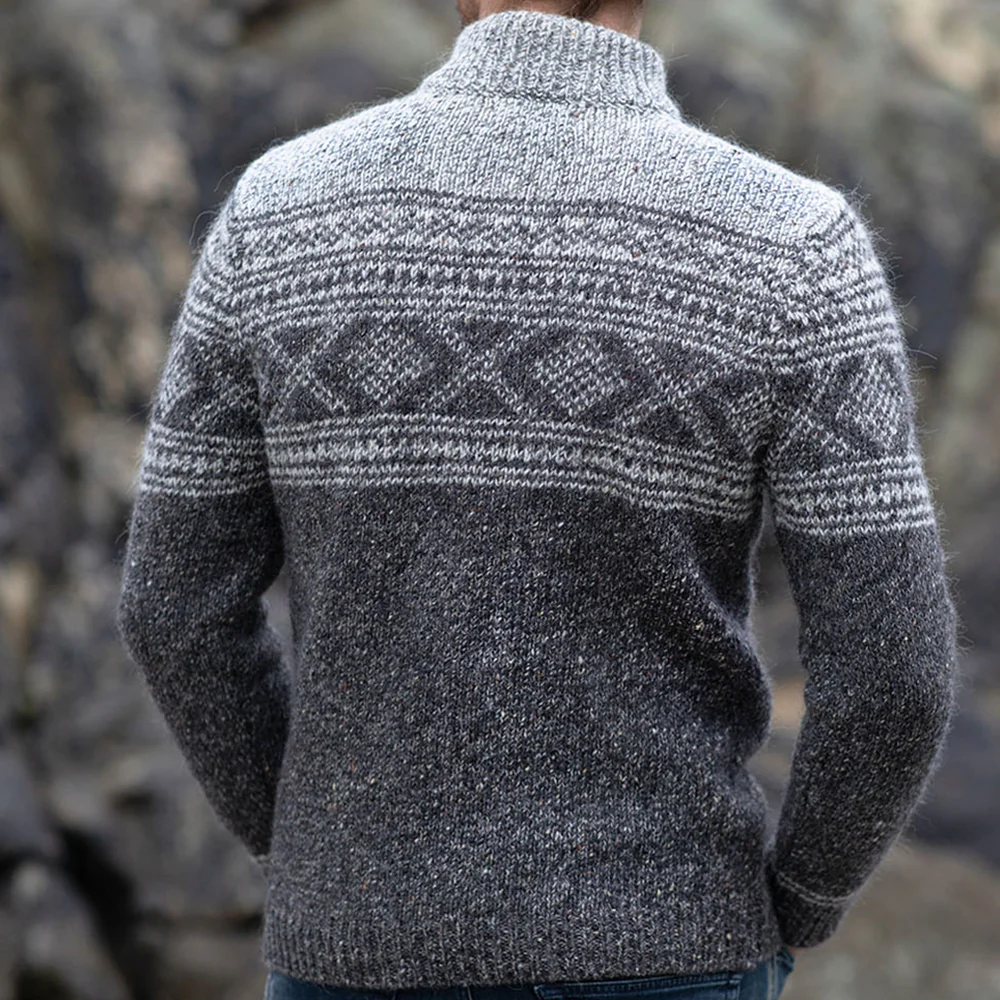 Made in Ireland by Fisherman out of Ireland, this jacquard pattern half zip sweater is the perfect combination of time-honoured craftmanship and effortless style.