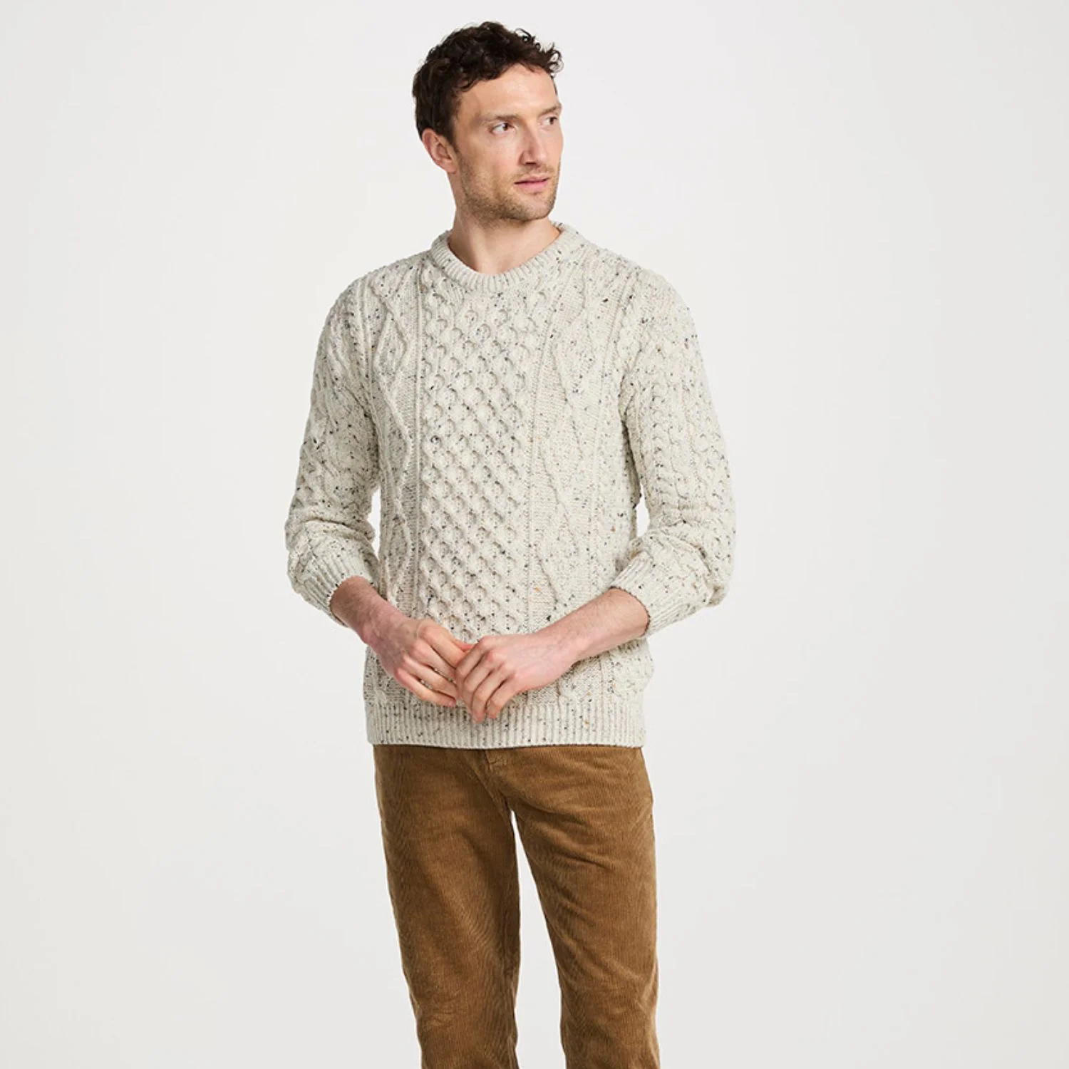 Natural Fleck Unisex Classic Crew Neck Aran Sweater