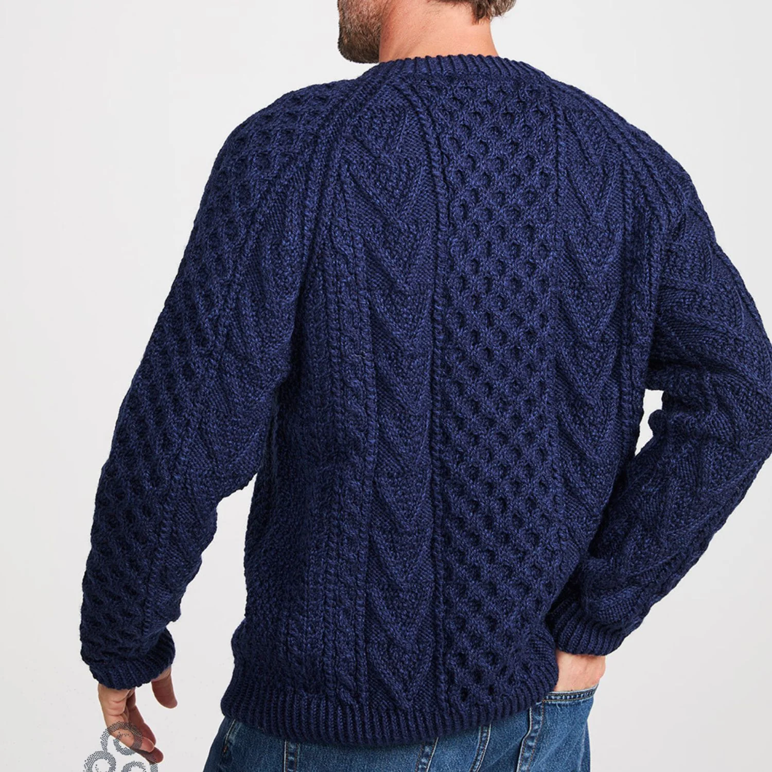 Navy Hand Knit Unisex Crew Neck Aran Sweater