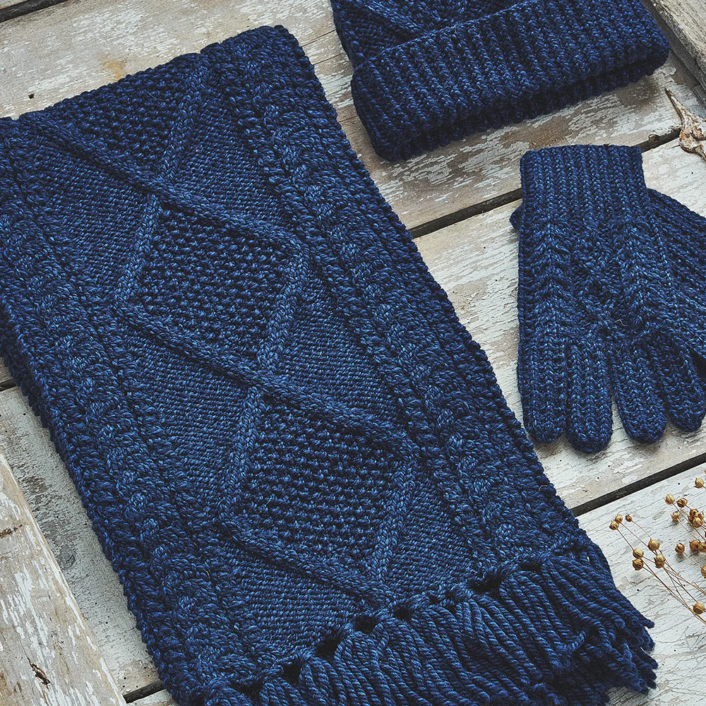 You will easily style this hand knit aran scarf with many outfits and the beautiful navy colour make it is a timeless piece.